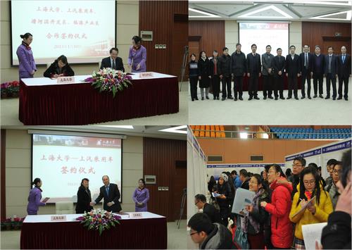 上海市劳动和社会保障局就业处处长张德志、上海市学生事务中心副主任田磊、漕河泾新兴技术开发区总公司副总经理叶敞、临港人才有限公司董事长郑章晓、漕河泾开发区人力资源服务有限公司董事长瞿建中、漕河泾开发区人力资源服务有限公司总经理陆珉、上汽集团人力资源部总监兼上汽乘用车公司人力资源部执行总监王董雨、上汽乘用车公司人力资源部高级经理赵明钧等校外领导和嘉宾出席签约仪式,我校党委常委、副校长叶志明教授,校长助理、研究生工作党委书记李伟,以及我校学工办、教务处及相关学院的领导代表我校出席签约仪式。签约仪式由李伟主持。