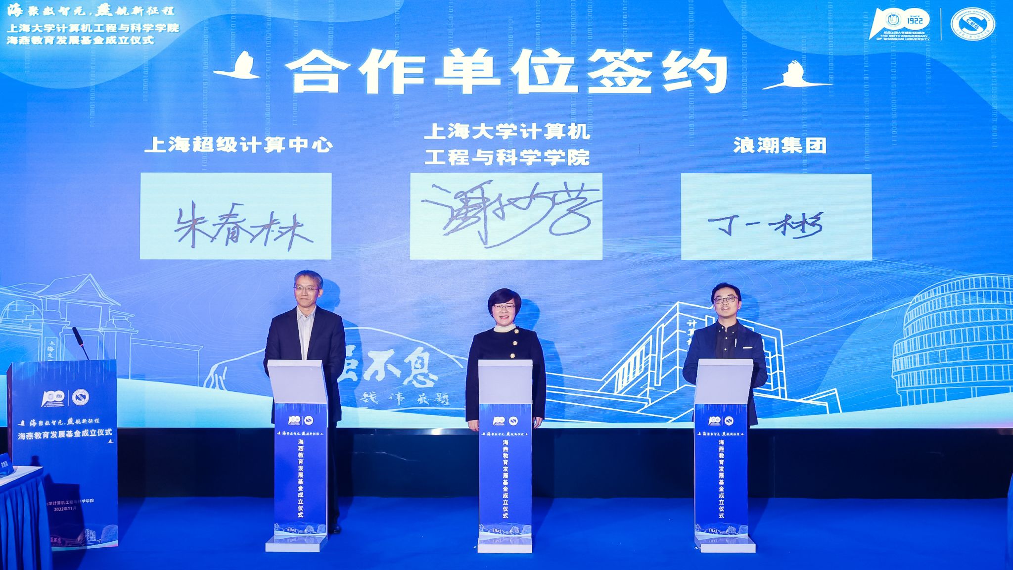 11月25日上午,“海聚数智元,燕航新征程”计算机学院海燕教育发展基金成立仪式于东区钱伟长图书馆大厅顺利举行。