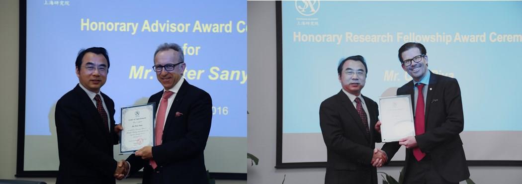 1月11日下午,上海研究院举行聘用仪式,正式聘任TMF总裁Peter Sany为“上海研究院高级顾问”,聘任TMF副总裁Carl Piva为“上海研究院兼职研究员”。常务副院长文学国代表上海研究院为其颁发了聘书。这是上海研究院成立以来聘请的首批外籍兼职研究员和高级顾问。
