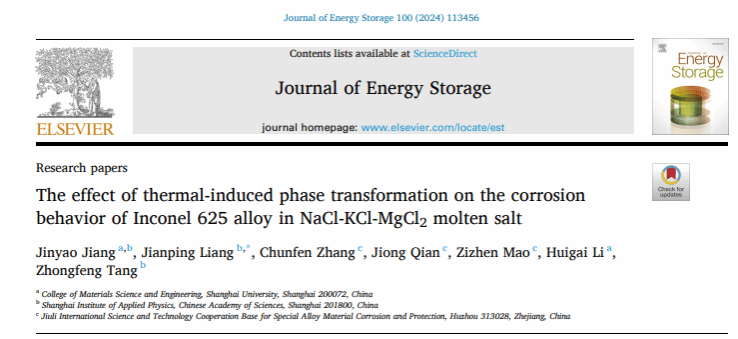 新一代光热发电(CSP)和高温储热(TES)工况温度将达到700℃以上,对结构材料提出了更高的要求。必须采用耐熔盐腐蚀、耐高温的合金作为结构部件用材,例如不锈钢、镍基合金等。氯化物盐是新一代光热发电最有竞争力的储换热工质,然而,氯化物盐的腐蚀性远高于硝酸盐,对合金材料的要求更加苛刻。该论文选择Inconel 625合金作为研究对象,首次发现“热诱导相变”是造成合金熔盐腐蚀的关键因素。