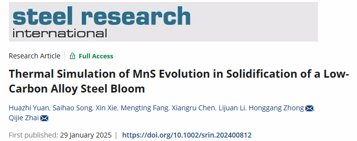 黑人巨大精品欧美_黑人巨大精品欧美黑寡妇_黑人巨大精品欧美一区二区_黑人巨大精品欧美一区二区免费_黑人巨大跨种族video_黑人巨大无码中文字幕无码_黑人巨茎大战俄罗斯美女_黑人巨茎大战俄罗斯美女先进凝固技术中心(简称CAST)团队利用连铸坯枝晶生长热模拟技术研究了不同连铸节点MnS的析出长大规律,研究成果以 “Thermal simulation of MnS evolution in solidification of a low-carbon alloy steel bloom”为题发表在冶金领域经典学术期刊《Steel research international》。该论文第一作者为袁华志博士研究生,通讯作者为翟启杰教授和仲红刚副研究员。