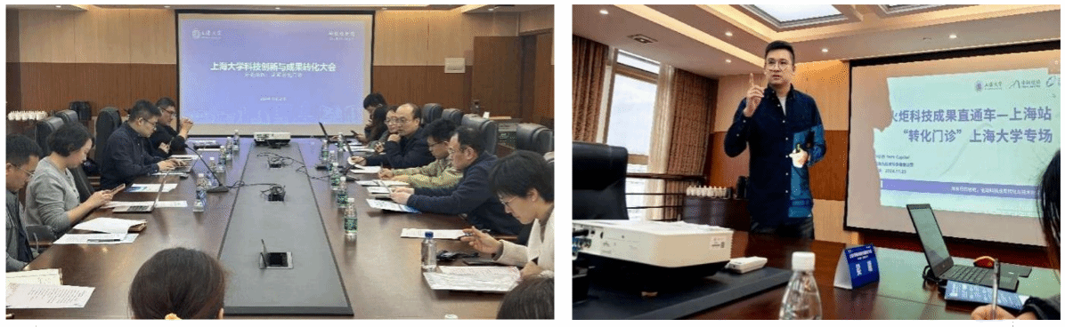 首期“科技成果转化门诊”遴选出材料学院、环化学院、机自学院、材料基因学院、转化医学院的6个项目,涵盖能源电池、化学化工、医学材料、医疗机器人等学校重点领域成果进入“1v1项目问诊”环节。