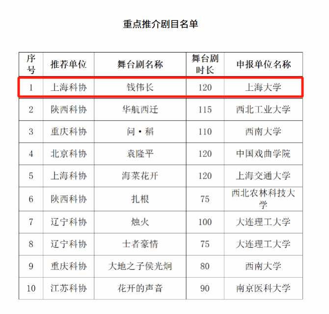 “2024年度科学家故事舞台剧推广名单”重点推介剧目名单(10个)