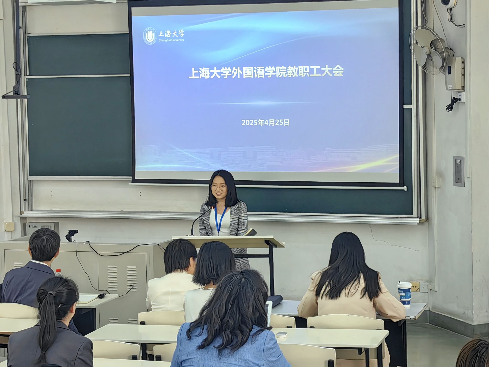 4月25日,外国语学院教职工大会在CJ207教室召开。学院党政领导班子成员与全体教职工齐聚一堂,围绕人工智能时代外语专业建设新方向、就业工作新挑战等核心议题展开深入研讨,共同探寻外语专业高质量发展的创新路径。本次大会由党委副书记、院长尚新主持。