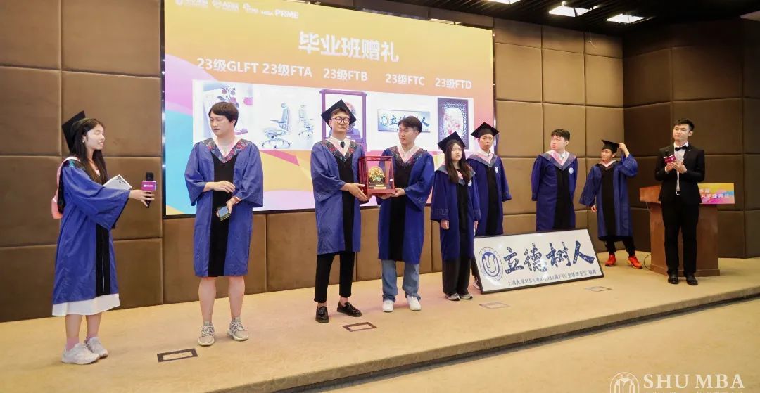 随着毕业视频的播放,一幕幕熟悉的画面,将同学们从重返校园时专业积淀与求知热忱的交融,到课堂内外实战经验与学术理论的思辨碰撞;从案例研讨激荡的思维火花,到实践项目淬就的战略视野;从深夜案头的专注耕耘,到跨文化交流中的自信绽放的历程生动再现。每一帧画面都镌刻着职场精英向复合型管理者的跨越,见证着"知行合一"的成长蜕变。