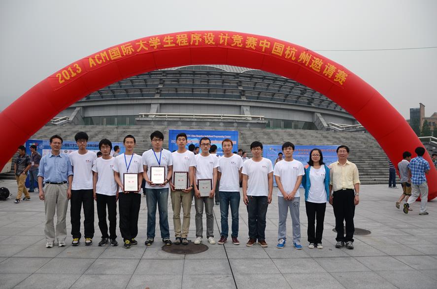 2013年6月1日至2日,第38届ACM国际大学生程序设计竞赛(ACM/ICPC)亚洲赛区中国杭州邀请赛在浙江工业大学屛峰校区举行。我校经过校内选拔,选派出由社区学院和计算机学院二、三年级学生学生组成的3支队伍共10人参加了本次比赛,与来自全国的65所高校的130多支队伍同台竞技。经过参赛队员的艰苦努力,最终获得了三块铜牌和“顽强拼搏奖”的好成绩。